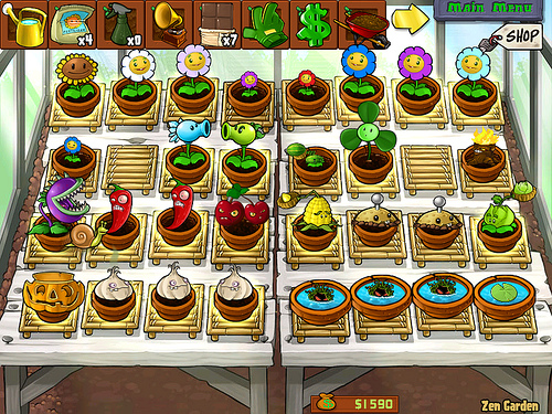 They are the same plants the player uses in the game. It is a virtual garden where the player keeps plants that he or she has collected usually obtained from presents. Zen Garden is a game mode in Plants vs.